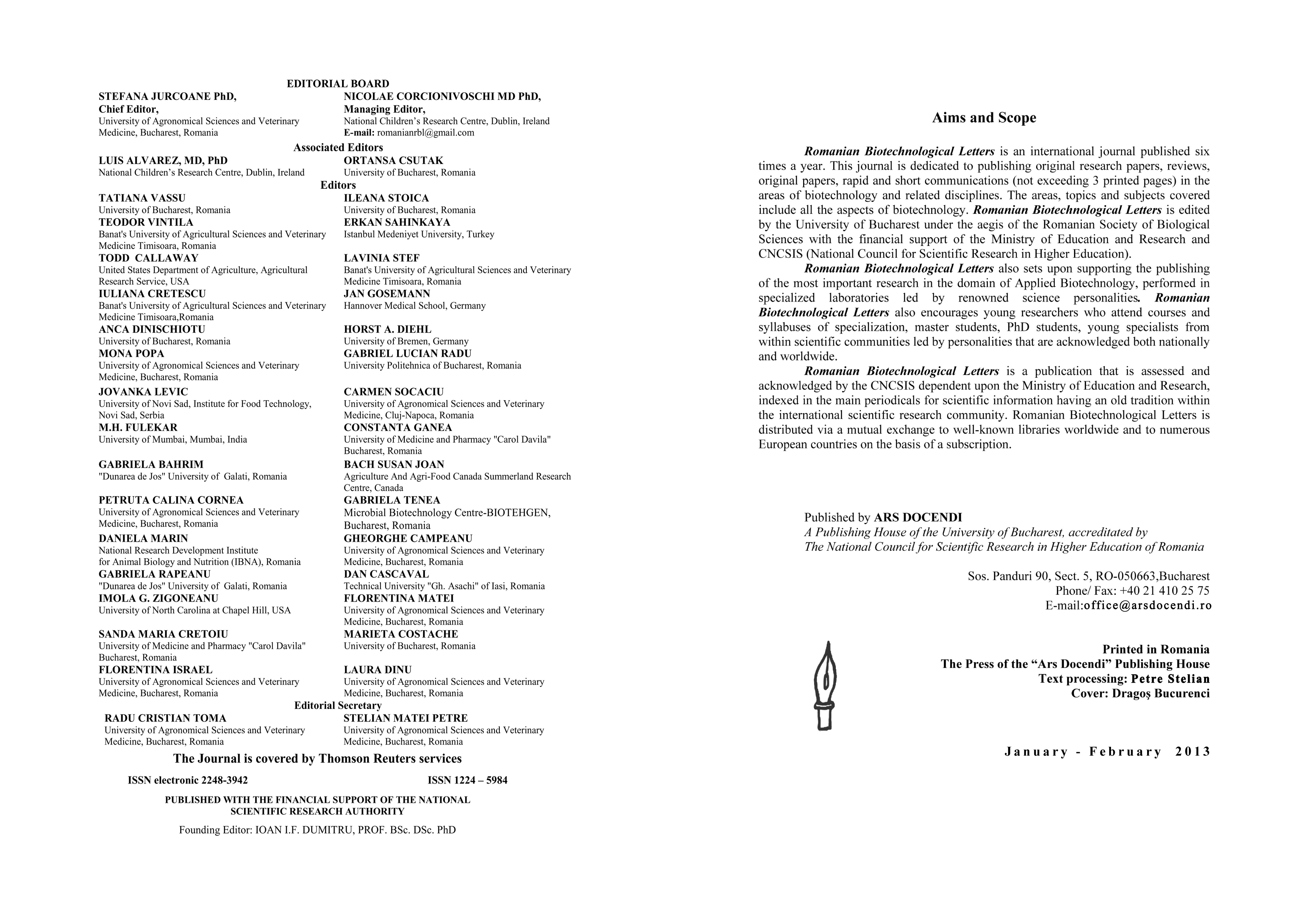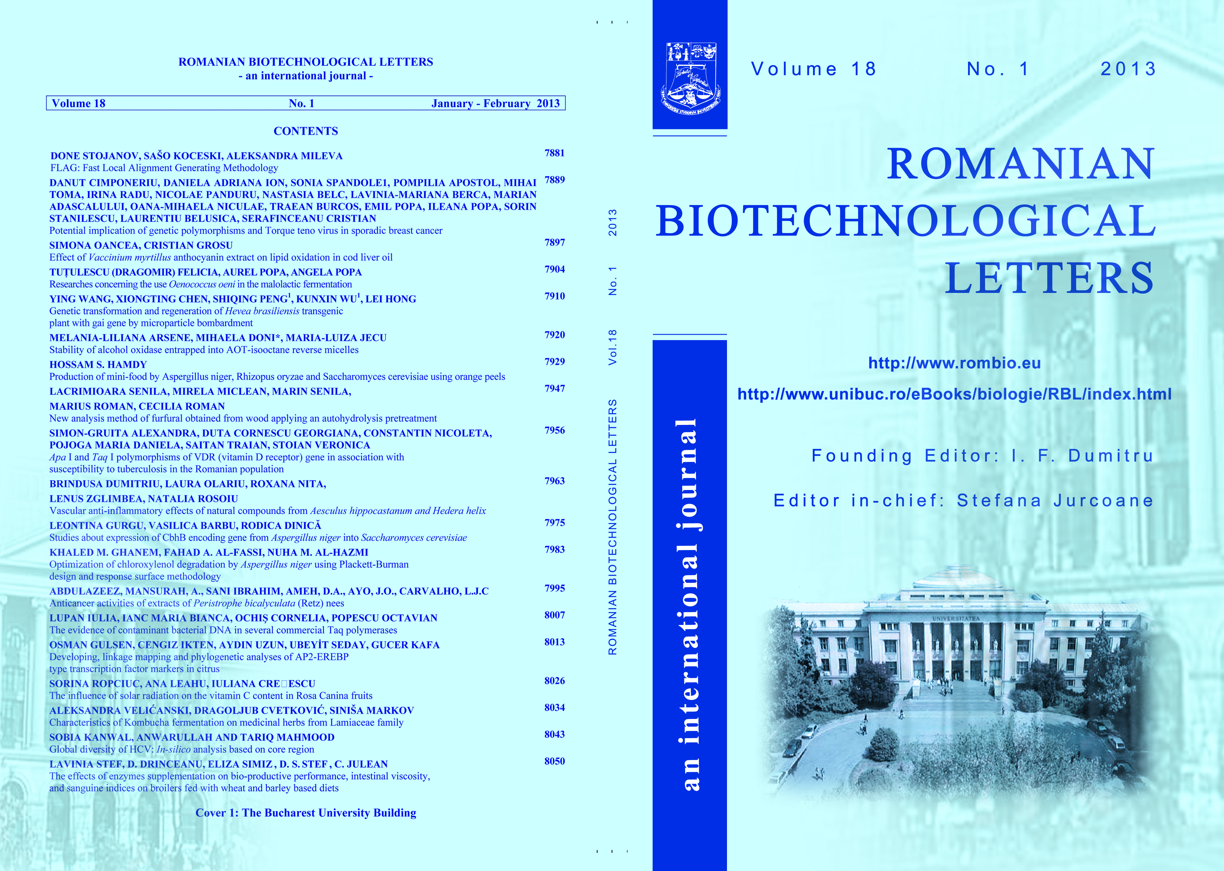 ROMANIAN BIOTECHNOLOGICAL LETTERS